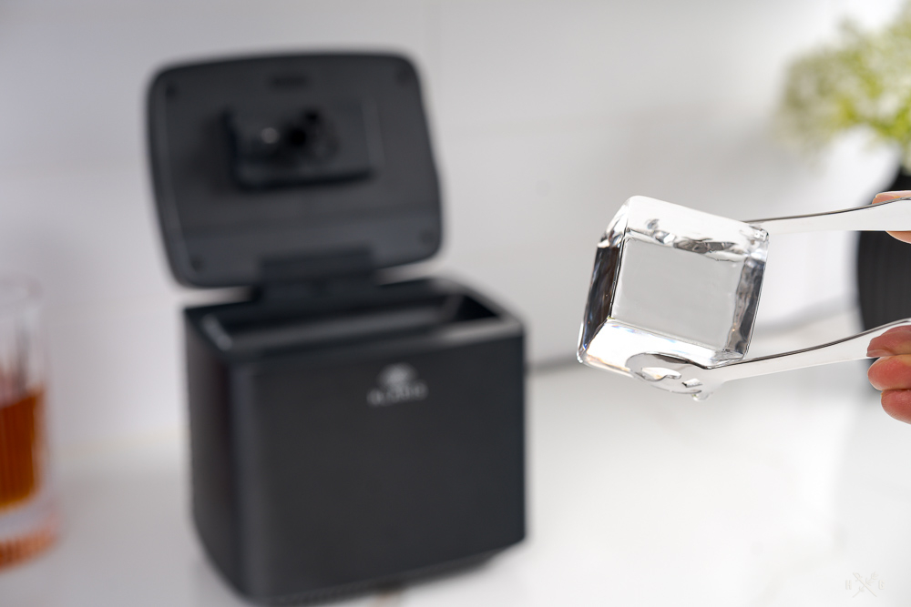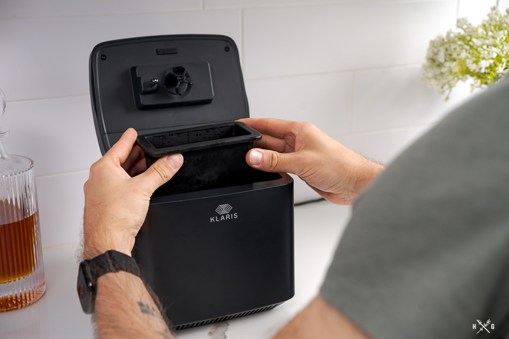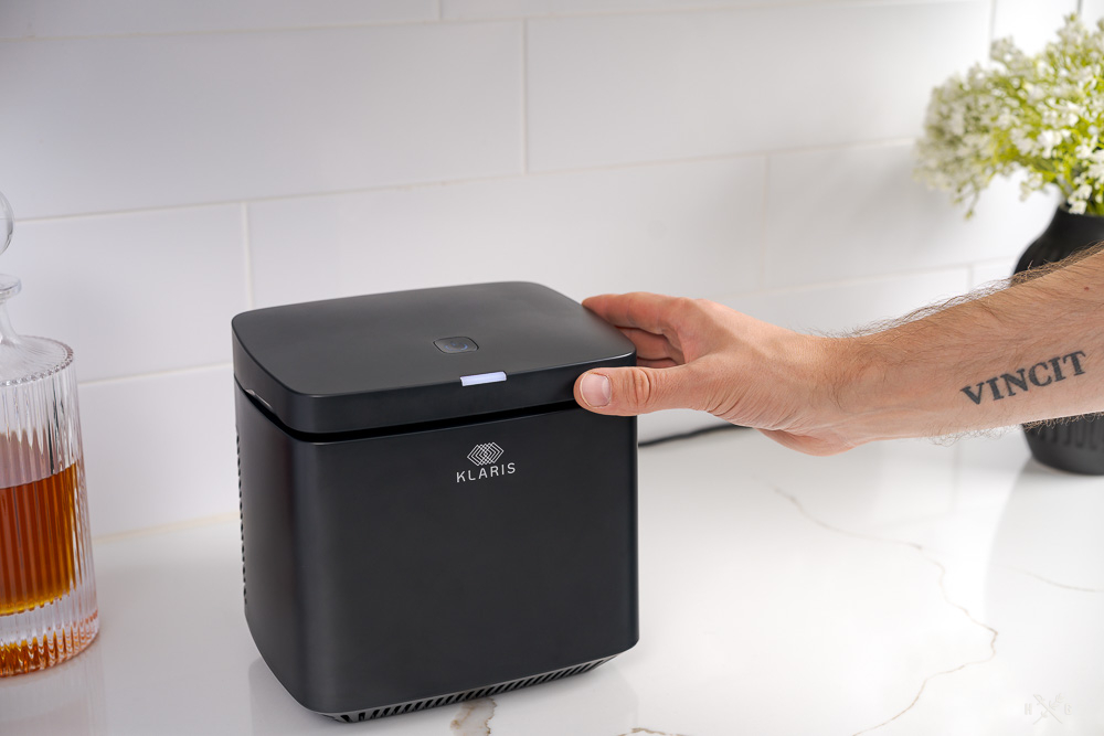 What I appreciated about the Original Klaris is it allowed me to reclaim space in my freezer, however that came at the cost of losing some space on the home bar. The size of the Mini is comparable to a toaster and it can easily fit on a counter alongside other kitchen appliances. Because it’s shorter than the Original, it will even fit if cabinets are above—something that I couldn’t do with the Original. The Original required 19.5″ of clearance to open the lid and the Mini only requires 12.5″.